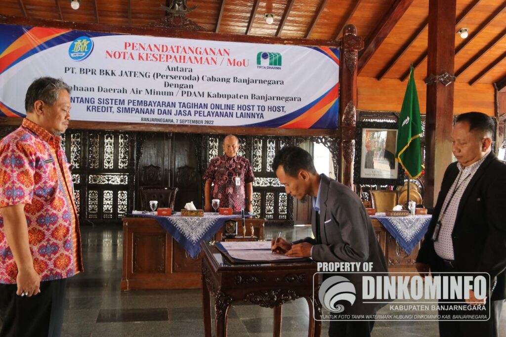 Perusahaan Daerah Air Minum (PDAM) Kabupaten Banjarnegara dan PT BPR BKK Jateng (Perseroda) telah menandatangani Nota Kesepahaman (Mou) tentang Kerja Sama Sistem Pembayaran Online.